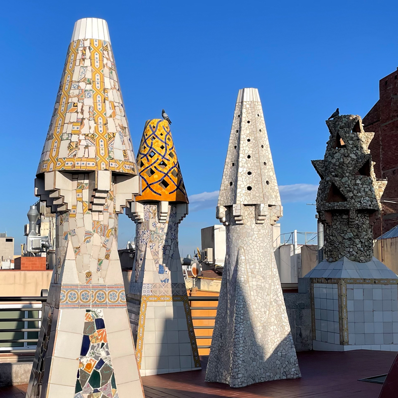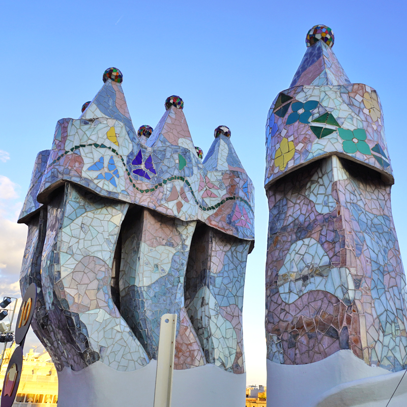 ひとつとして同じものがない遊び心のある煙突・換気塔の数々はカサ・バトリョ・カサ・ミラにも見られます。