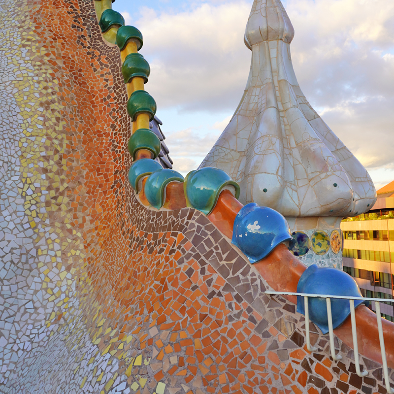 ガウディが編み出した破砕タイル手法は、不用品となったタイルを再利用できるだけではなく、複雑な曲線にも対応しやすかったりと自由度が高い装飾方法でした。