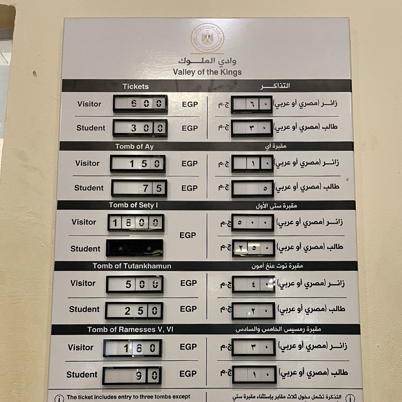 ちなみに1番高いお墓はセティ1世のお墓で、こちらはなんと1,800EGP(約8,400円)!!