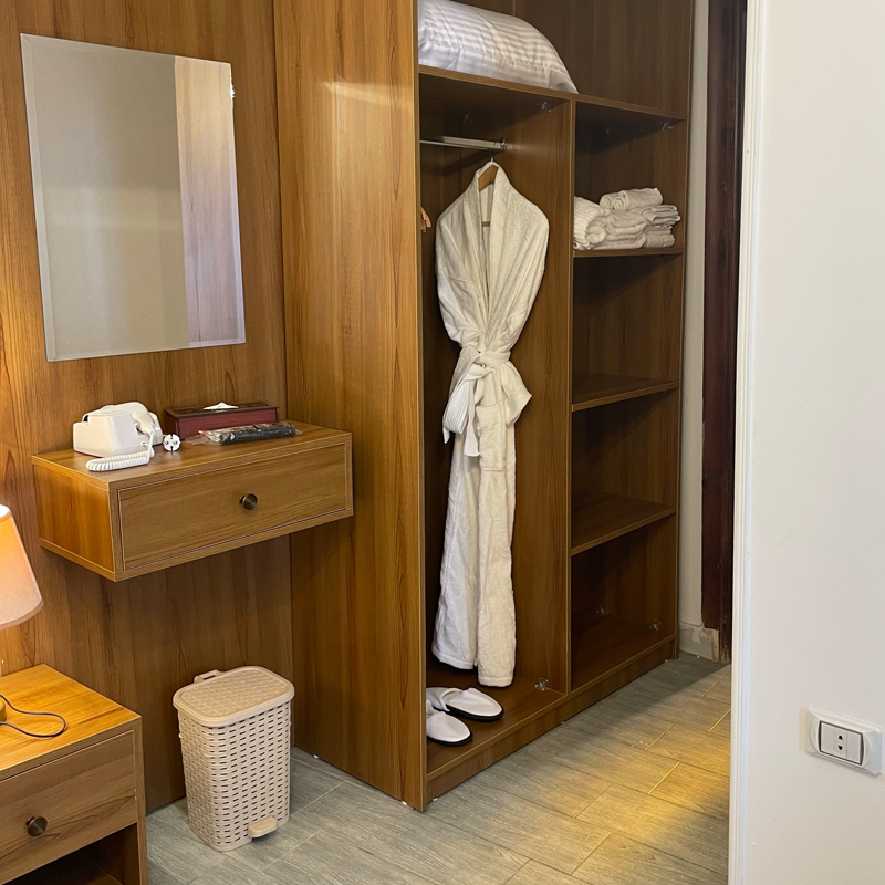 木の温かみある空間で、スリッパやバスローブ付きなのも女性には嬉しい。