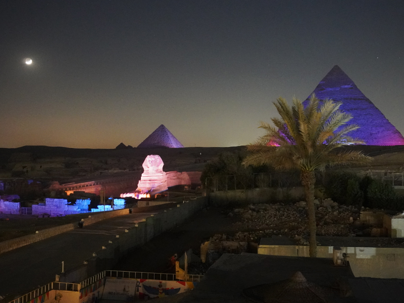 たまたまこの日の夜は、ピラミッドの音と光のショーが開催されており、夜ご飯を食べながらショーを堪能することが出来ました。