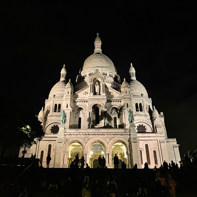 モンマルトルのシンボル・サクレ・クール寺院も深夜22:30まで入れるため、夜の探索も楽しかったです。