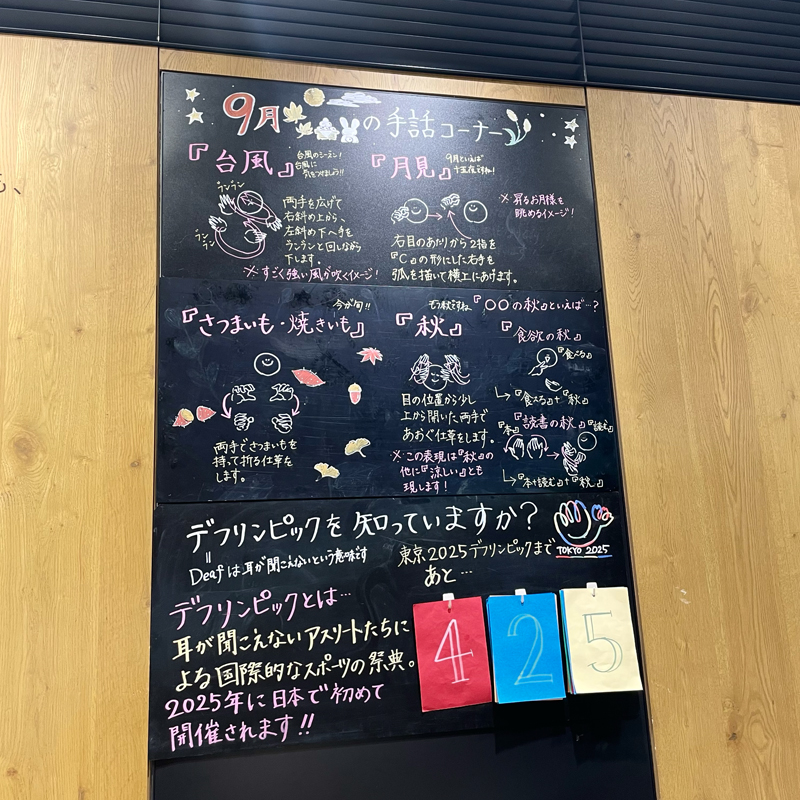 ところどころに手話での表現方法が説明されていたりと、サイニングストアならではのお店づくりが素敵でした。