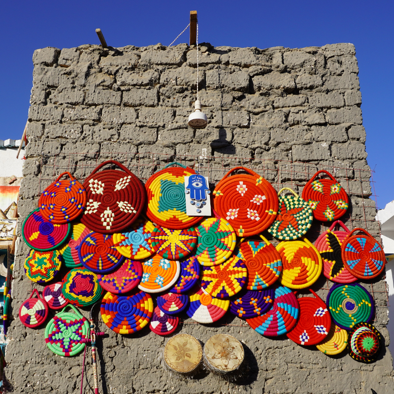 エジプト南部のアスワン・ヌビアビレッジのハンドメイドの工芸品なのですが、このカラフルさがアフリカっぽくてかわいい!