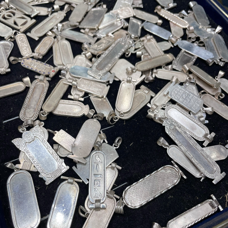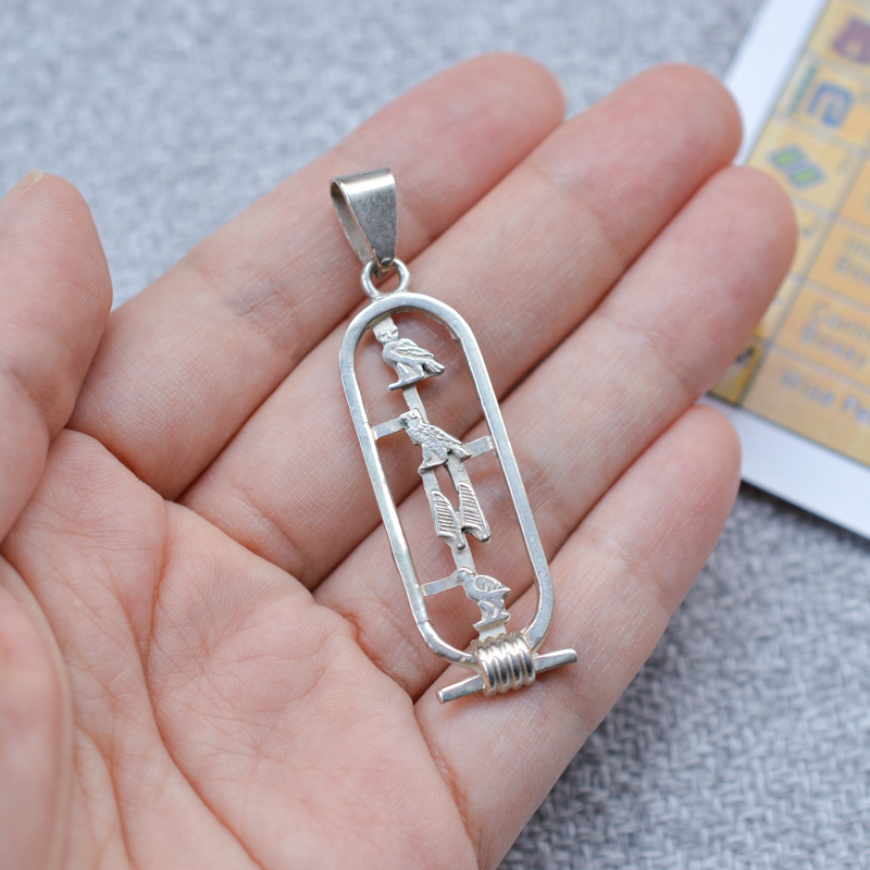 自分の名前がヒエログリフで入ったカルトゥーシュペンダント。