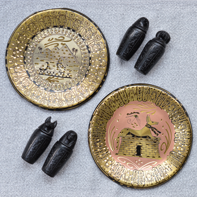 ピラミッドやアヌビス神が施されたキラキラとした壁掛けプレート。