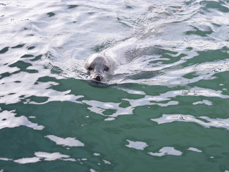 こんな手が届きそうな距離まで、たくさんのアザラシたちがやってきてくれるんです。