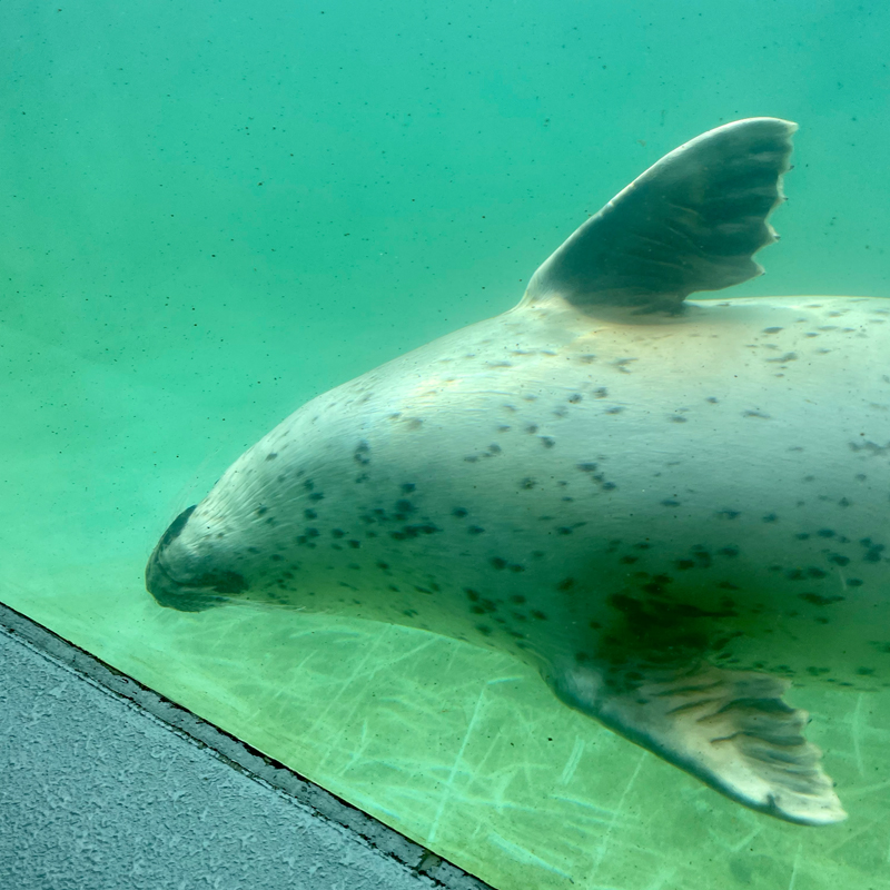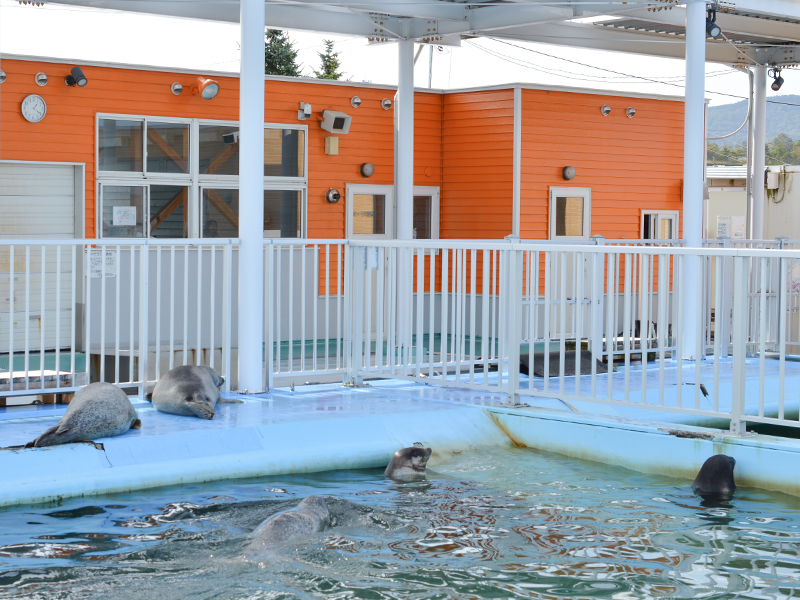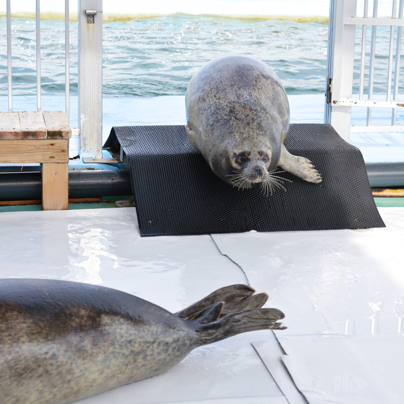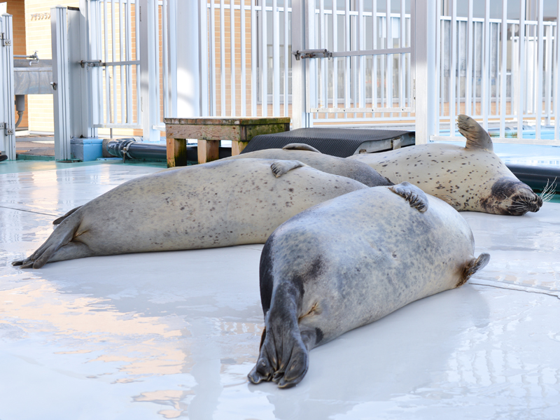 ひとつめの施設であるアザラシランドには、ゴマフアザラシとワモンアザラシ合わせて約20頭のアザラシがいます。