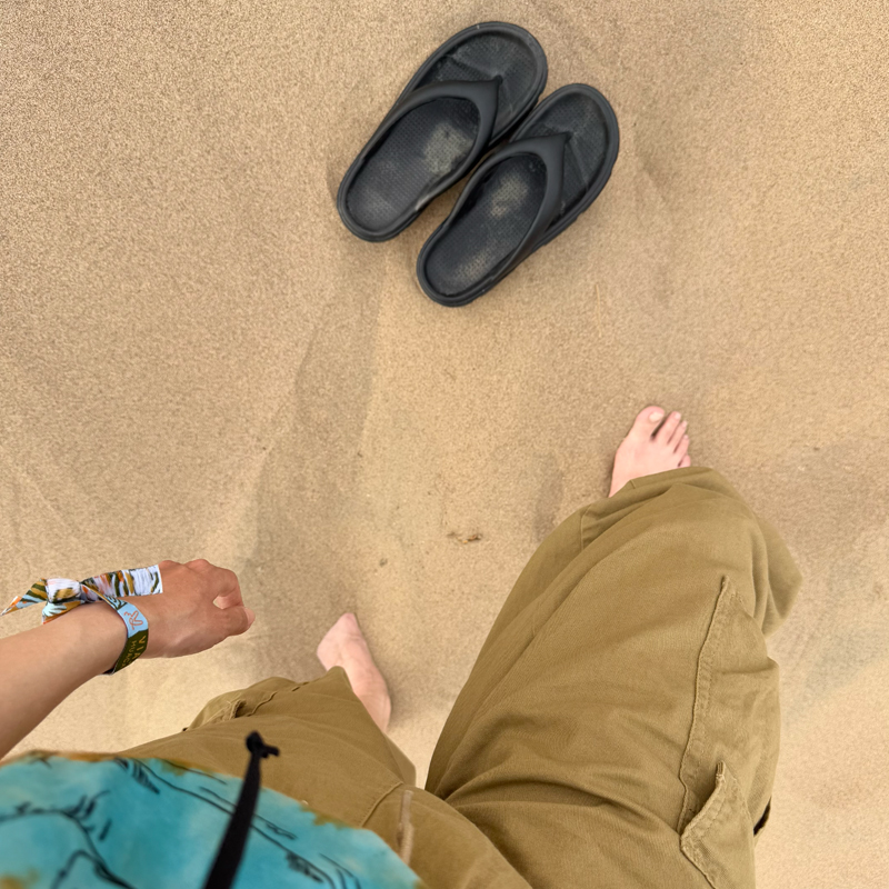 サンダルを履いていたのですが、砂で持っていかれるため、途中からは裸足になって登りました。
