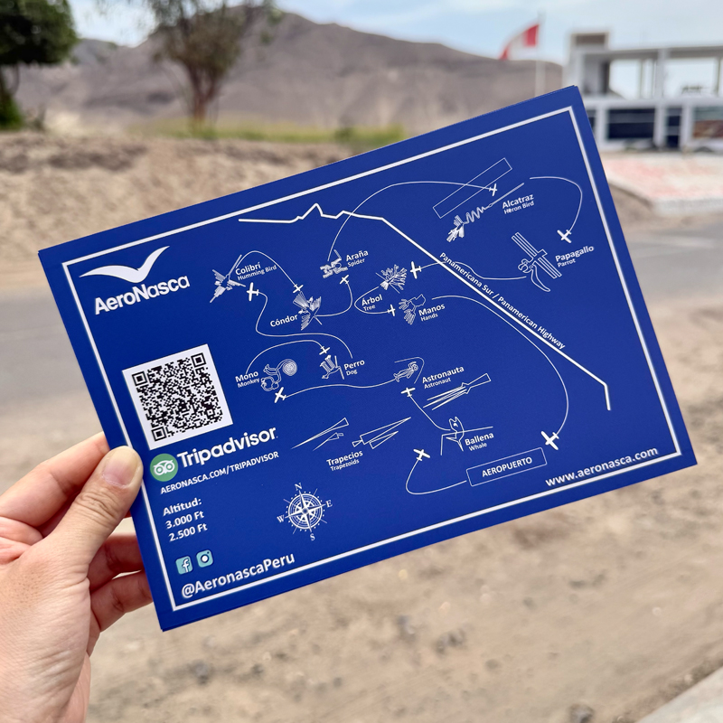 ナスカ空港からだと、高度の低いセスナ機に乗れるので地上絵が見やすいというメリットも。