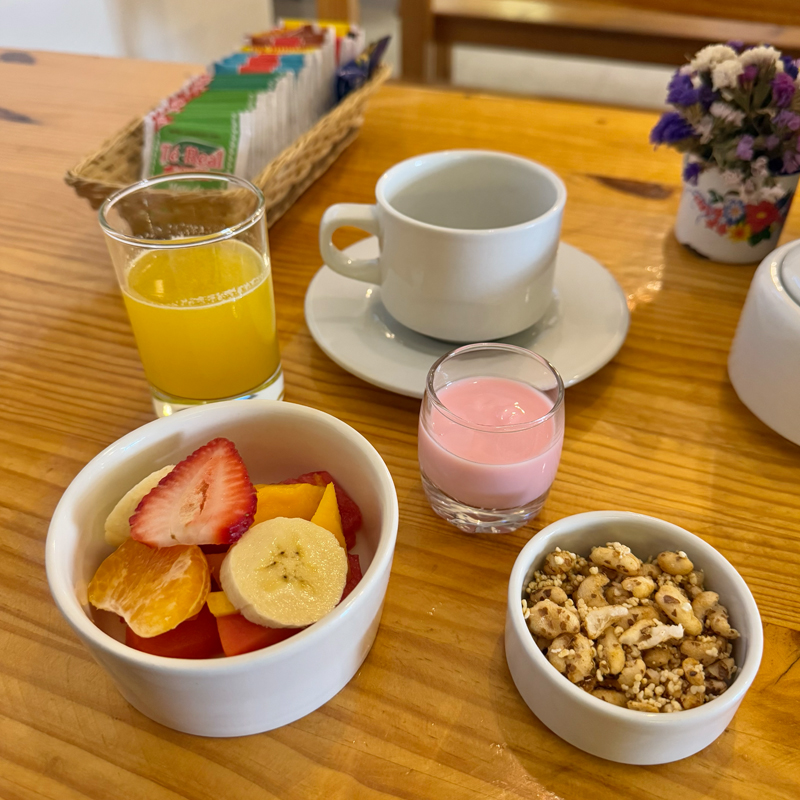 新鮮なフルーツとアボカドに、作り立てのスクランブルエッグを毎朝振る舞ってくれました。