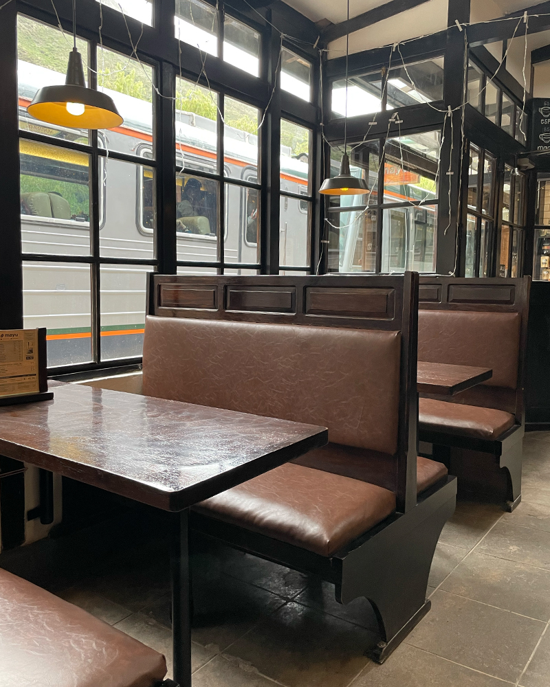 列車の出発まで時間があったので、駅にあるカフェで一息つくことに。