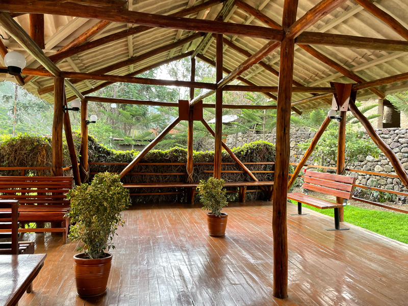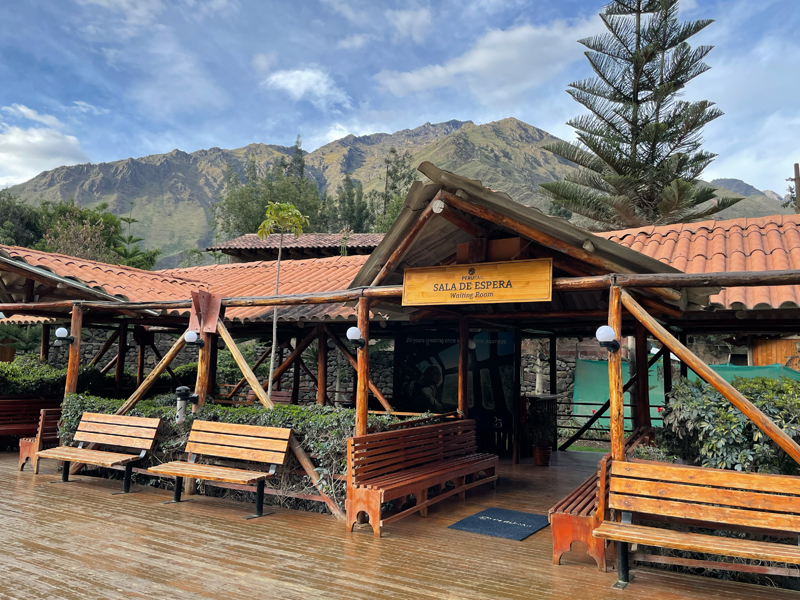 バスでオリャンタイタンボ駅に到着すると、ここもまた自然あふれた素敵な待合室がありました。