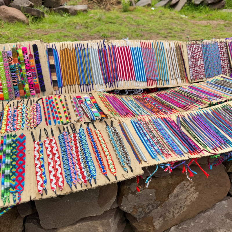 ランチが終わり、雨が上がった帰り道には手作りの鮮やかなミサンガが並べられたお店が出現!