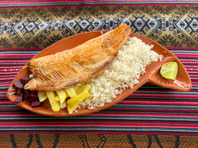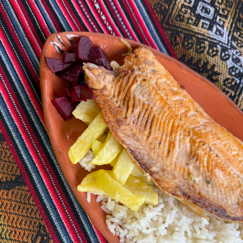 メインはチチカカ湖で獲れたマス料理!(トゥルーチャ)
