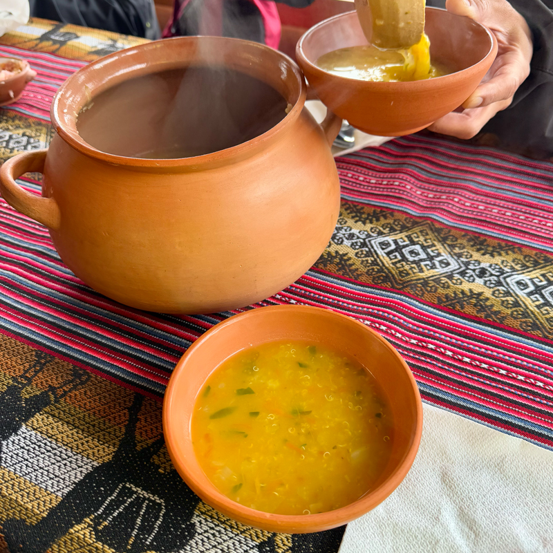 まずはペルー定番のキヌアスープと前菜からスタート。