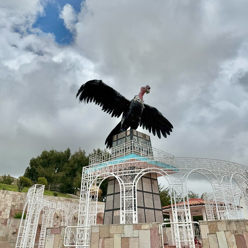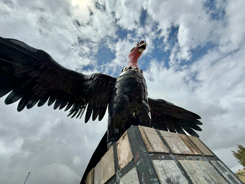 休憩を挟みながら、修行とも言える階段を必死に登り続けて、やっと見えてきたのは大きなコンドル。