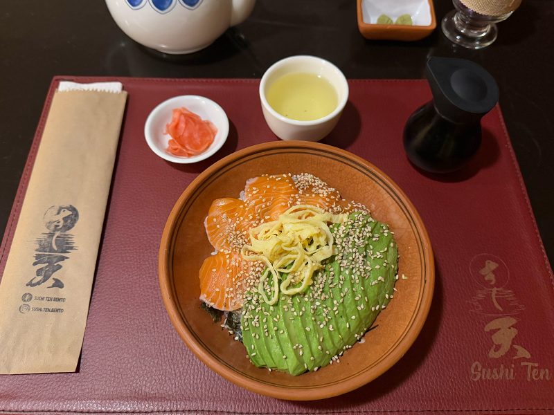 わたしが注文したのはサーモンとアボカドのどんぶり。価格は32ペルーソル(日本円で約1,300円・2025年3月現在)