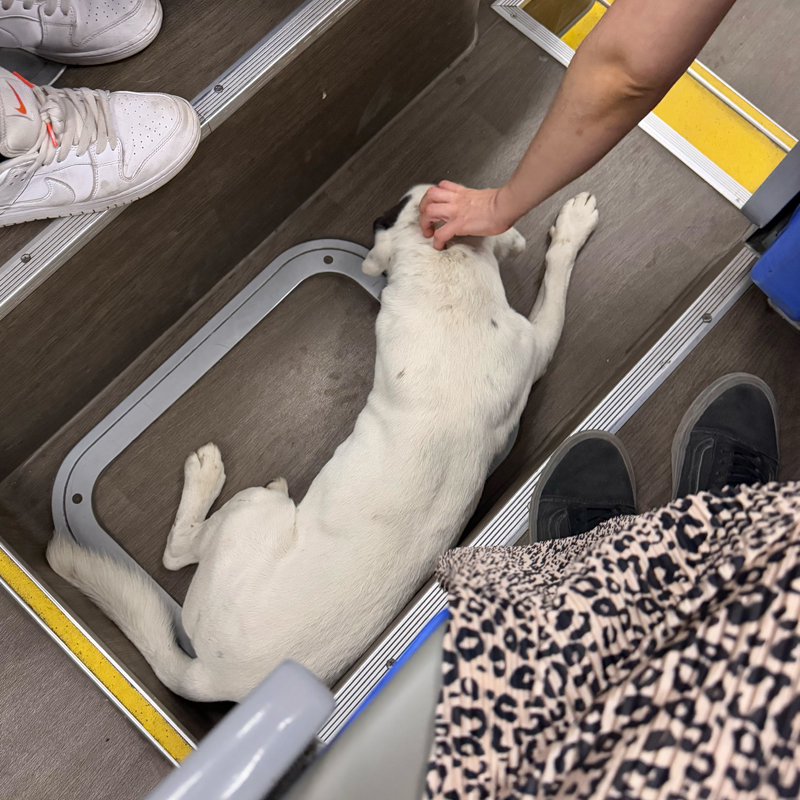 ある日、バスに乗ろうとしたら、ストリートドッグも一緒に乗ってきたんです。