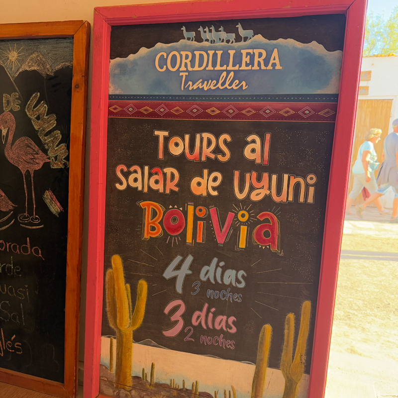 このツアーを提供しているツアー会社はたくさんあり、サンペドロ・デ・アタカマの中心地には多くのオフィスが並んでいました。