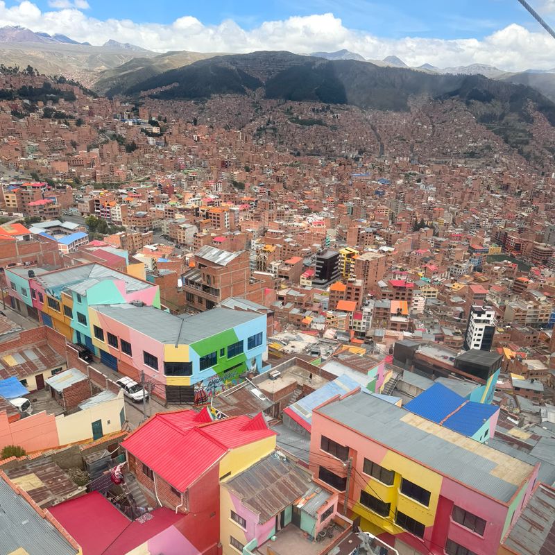 ラパスは世界一標高が高い首都と言われ、ロープウェイがたくさん張り巡らされた町でした。