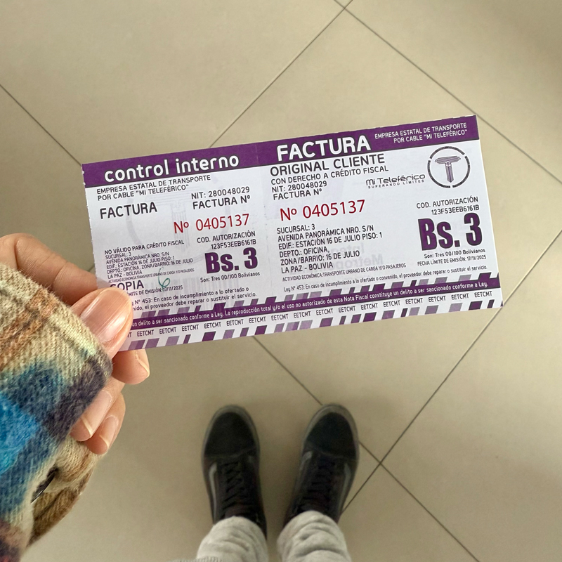 ロープウェイのチケット料金は1区間3ボリビアーノ(約66円・2025年現在)と、とても安価。