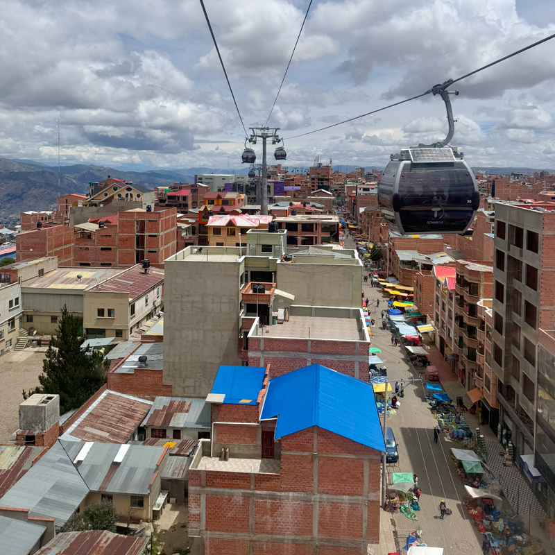 ラパスはロープウェイが張り巡らされていて、ローカルの人の交通手段ともなっている、とても珍しい町なんです。