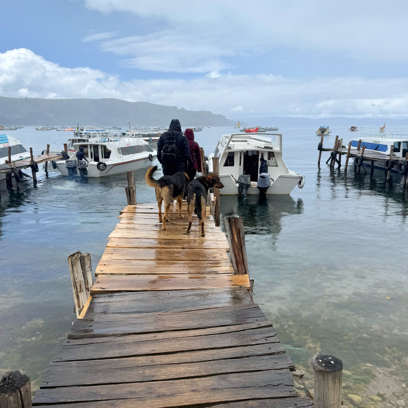 南米では「犬がどこにでもいる」のが日常なのですが、この日も例にもれず、桟橋には数匹のワンちゃんたちがのんびりとお見送りに来ていました。