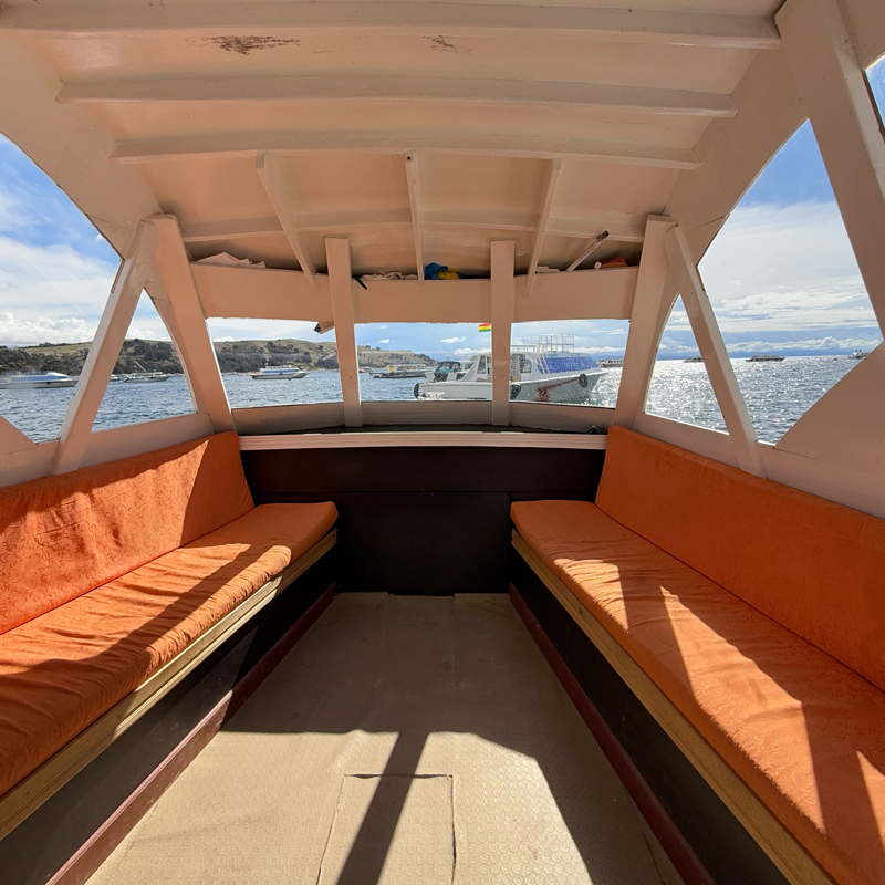 どんよりとしていた雨模様も忘れるぐらい、ボートの中は想像以上に綺麗で快適でした。