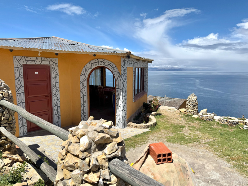 途中にはロッジもあり、テラス席からチチカカ湖を眺めながらのんびり過ごす宿泊客の姿も。