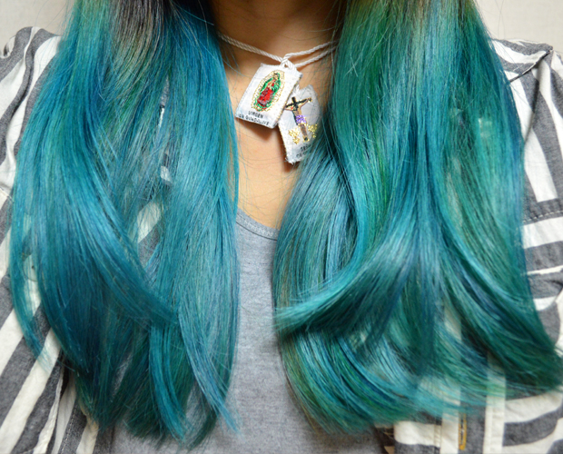 いつものグリーンヘアが退色してきたので