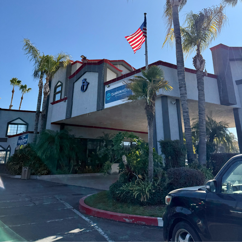 ベーカーズフィールドで利用したモーテルの名は、Clarion Hotel Bakersfield North