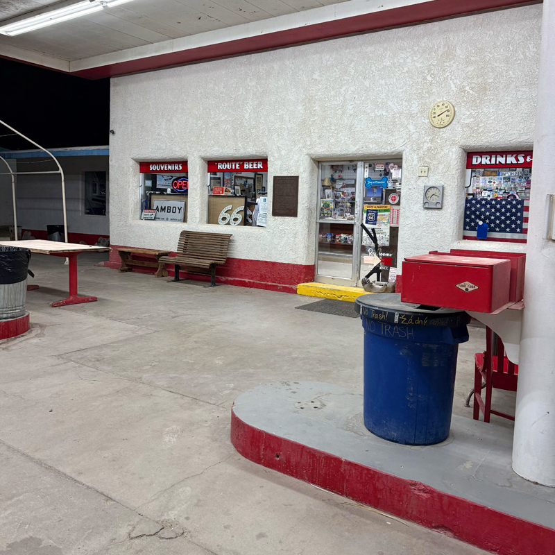 ガソリンスタンドとしても機能していてお手洗いもあるので(ただし、仮設トイレで夜はかなり真っ暗!)、ロードトリップ中の休憩にもぴったりです。