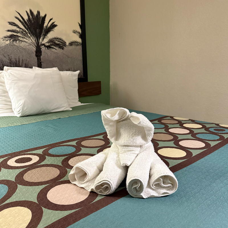 今回泊まったSuper 8は、タオルの置き方がかわいくて、ちょっとしたホスピタリティを感じたなぁ。