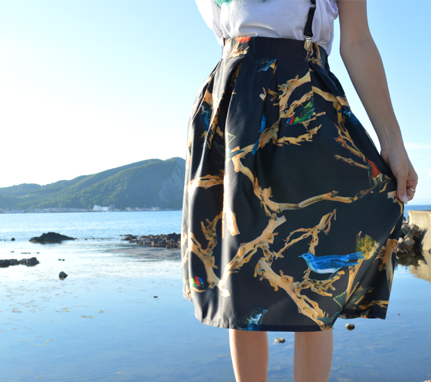 7月のOOTD QUEENテーマも引き続き”柄アイテム” 第1回目はコントラストの効いた”鳥柄スカート
