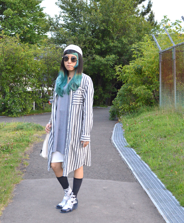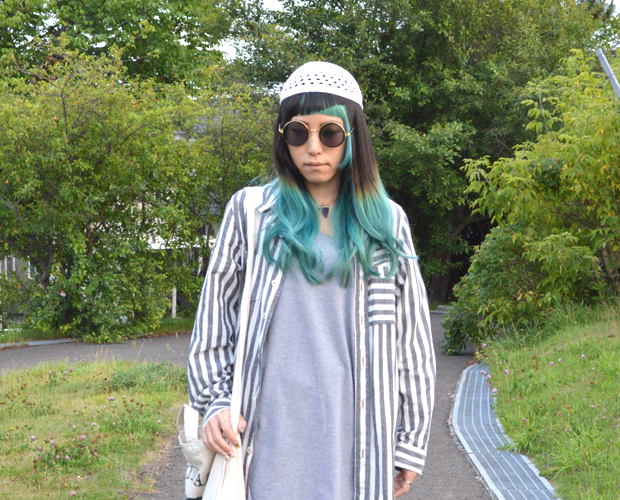 グレーとホワイトカラーで爽やかなストライプシャツスタイル #OOTD QUEEN