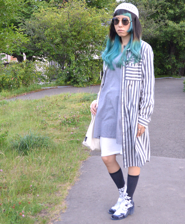 knit : hand made(okeiru) shirt : Used top : Used inner : Used socks : STANCE shoes : American Apparel [mayuko taira 152cm] |