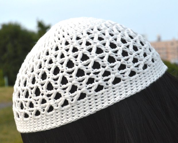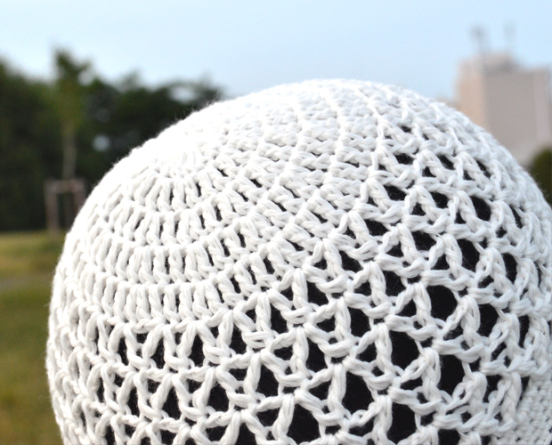 涼しい透かし編みのニットキャップ。