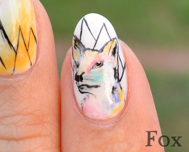 左手にはキツネのイラストを。