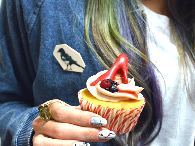 夏の日はお店の前のベンチでカップケーキを食べたことや