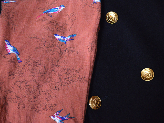 鮮やかな鳥柄と繊細なフラワー柄のコントラストが