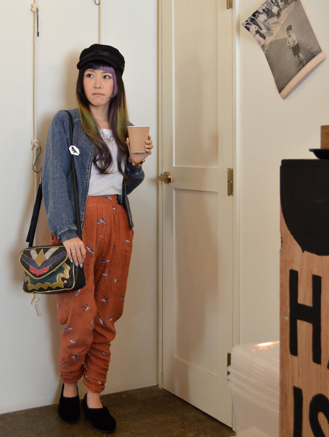 | Cap : Used Outer : FIDELITY Tops : Used Bottom : U.S.A select Bag : Vintage Shoes : Used |