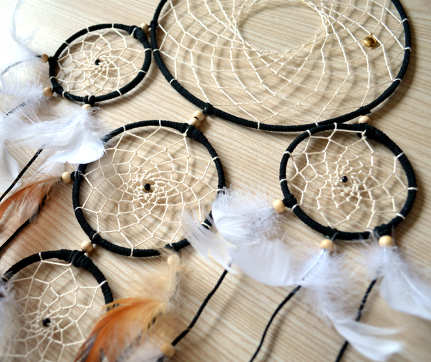 前回の記事で紹介したドリームキャッチャーの作り方を並べてみました。