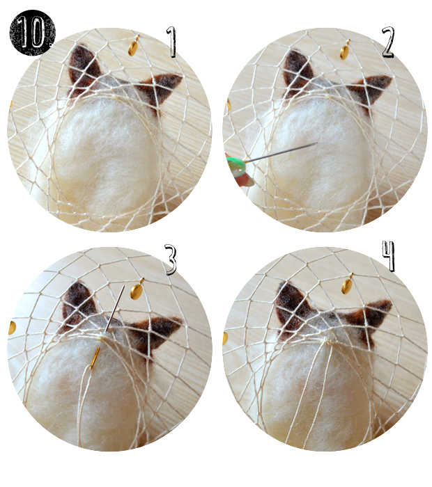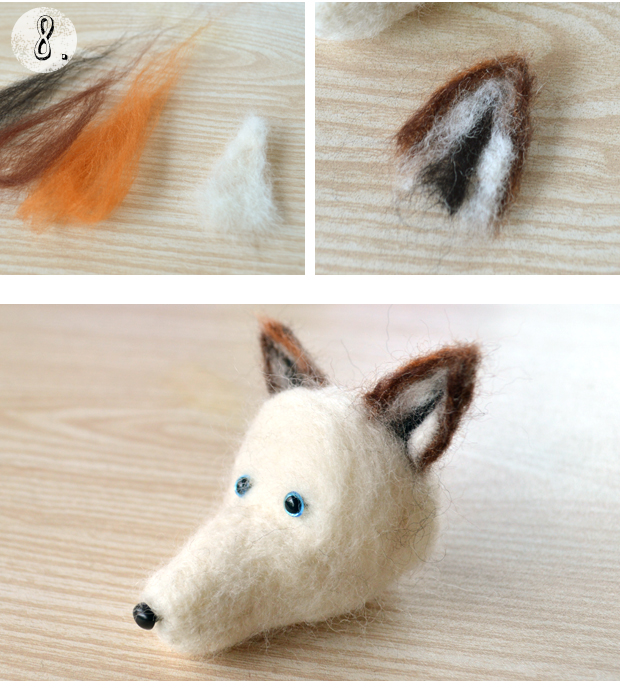 続いて、耳のベースを作り本体にニードルで刺しながら付け足していきます。