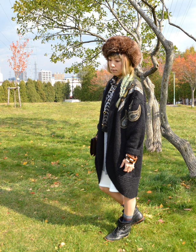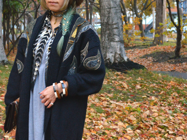 Vintageニットガウンをアウター代わりに #OOTD #秋スタイル