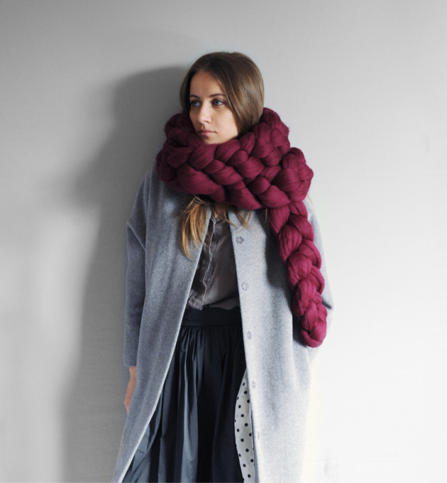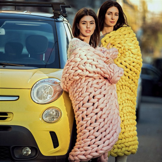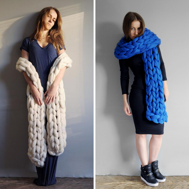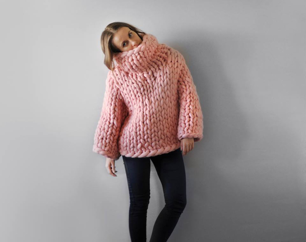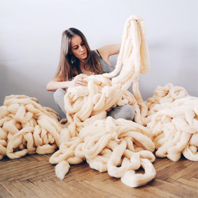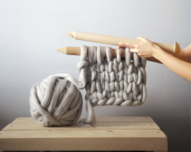 そのニットはなんとひと目で約7.6cmもある極太な毛糸!