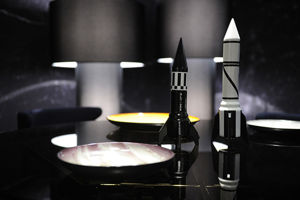 お皿だけではなく、ロケットのペッパーミルや宇宙飛行士の花瓶も展開