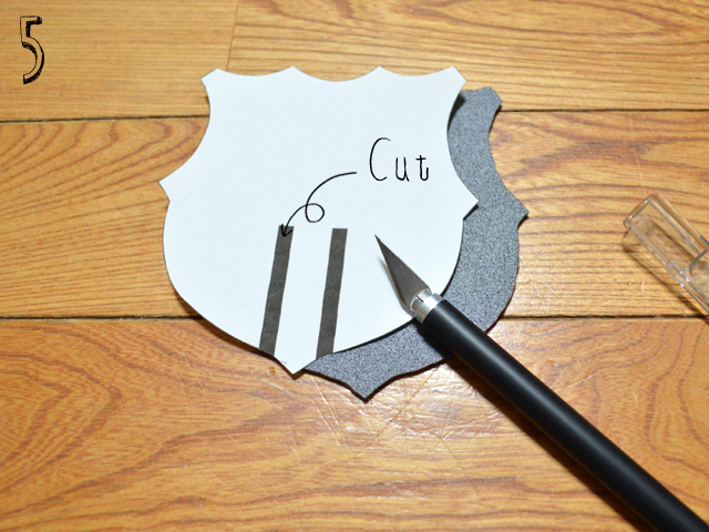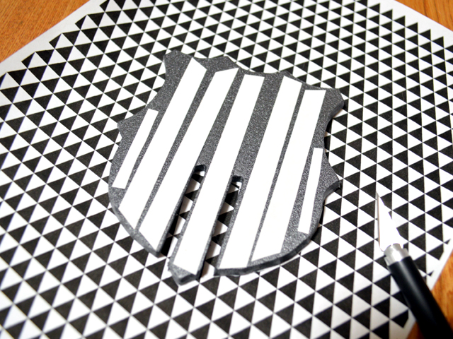 両面テープを全体に貼ったパーツを用紙の裏に貼りパーツの形に沿ってカット。