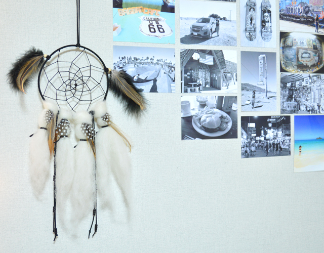DIYと言えば、2つ飾ってあるドリームキャッチャーも手作り。