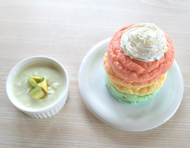 レインボーパンケーキとアボカドポタージュ。鮮やかなランチを自宅で。#pancake #avocado
